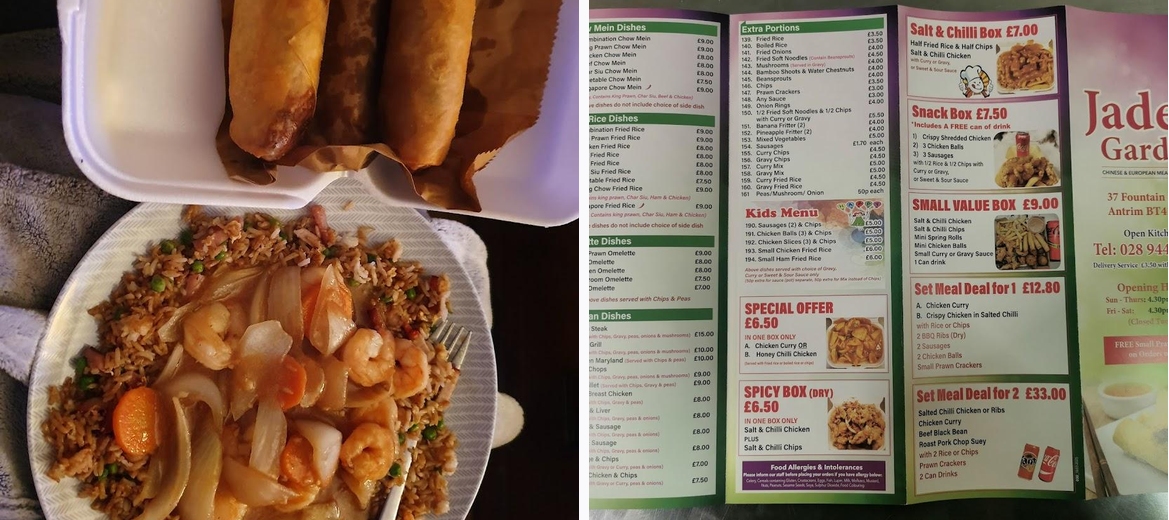 Discover Jade Garden Antrim, your go-to Chinese takeaway located at 37 Fountain St, Antrim. Enjoy delicious fried rice, crispy chips, and a welcoming atmosphere. Order now and experience exceptional service! Call +44 28 9446 3630 for fast delivery.